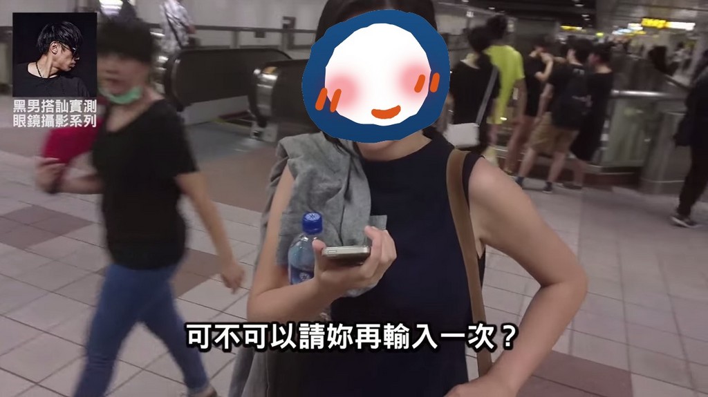 影片中,黑男在台北捷運忠孝新生站月台內搭訕氣質正妹,「LINE裡面通訊錄找不到妳的名字,可不可以請妳再輸入一次,妳再輸一次,不然我找不到,它好像壞掉!」這位正妹聽到立刻笑出來,也大方給黑男自己的LINE帳號。