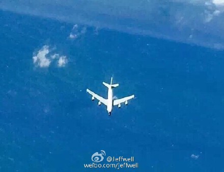 微博認證為民航飛行員、新浪航空顧問專家的用戶「Jeffwell」,6日在微博發布上述消息,並附上3張照片,指稱「朋友圈裡的一位飛行同仁拍下的美軍偵察機照片,MS是一架RC-135」。
