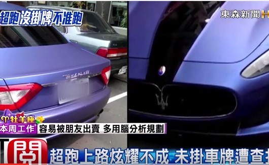 台中陳姓富少開著寶藍色瑪莎拉蒂上路,巡邏員警發現這輛炫車只有掛後車牌,陳男竟辯稱怪前車牌會擋住「三叉戟」logo;但車商表示兩者位置不同,根本不會擋到,其他名車或超跑車牌位置也不會被擋。