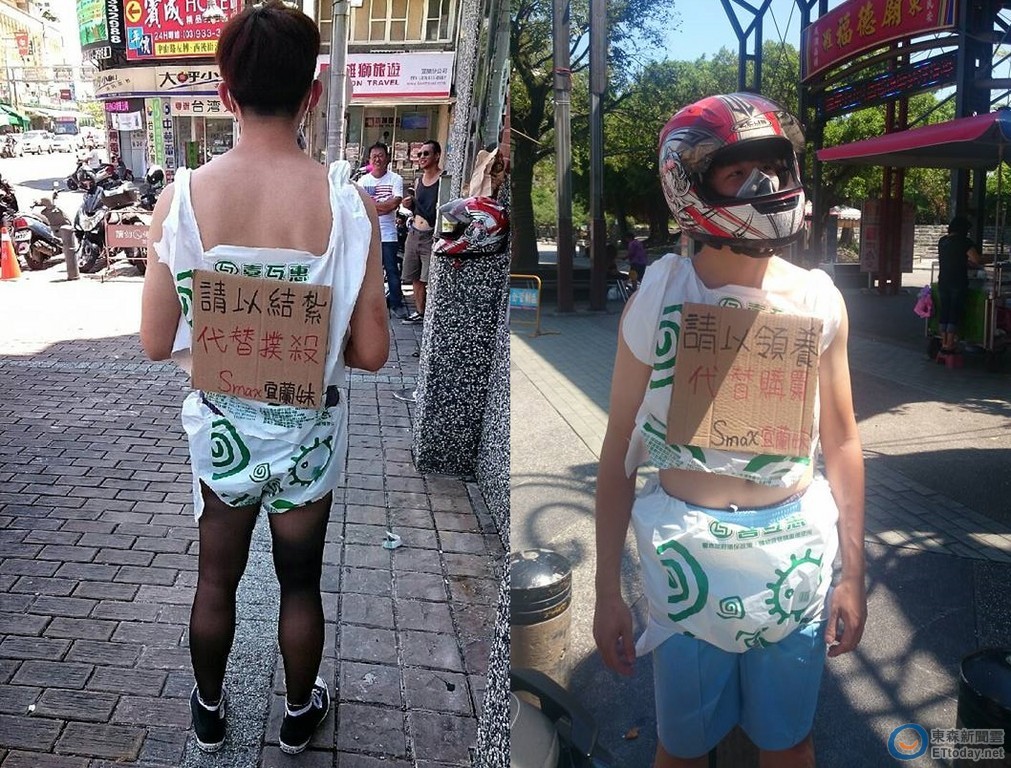 近來「裸穿塑膠袋」風潮盛行,一名雷姓高職生日前在臉書「放話」,破萬讚就穿塑膠袋從羅東騎到石牌,不過卻被網友酸「又一個想紅的」,而他之後不僅履行承諾,還在塑膠袋外掛上「以領養代替購買,請以結紮代替撲殺」,希望藉此機會替毛孩子發聲,讓許多網友改觀,大讚超帥氣!