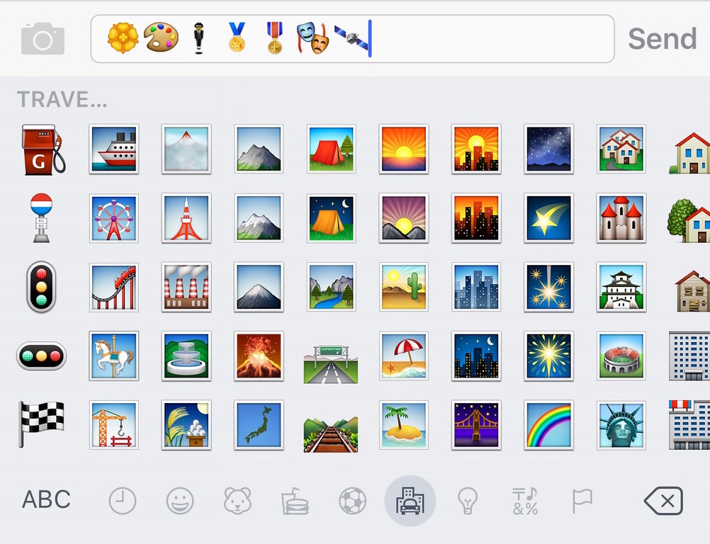 這次幾乎各個類別中都有新增表情符號,此外還新增了方型圖案的表情符號喔。
