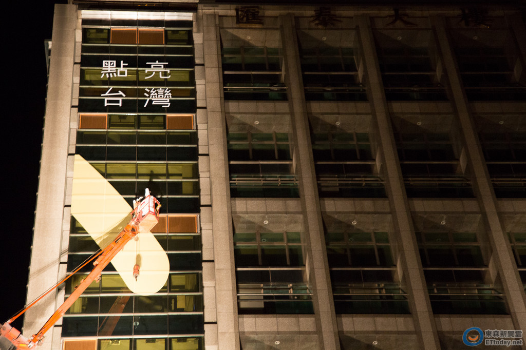 ▲▼蔡英文全國競總11日晚間,以「點亮台灣」做意象布置大樓外牆。(圖/記者季相儒攝,下同)