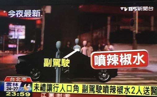 據了解,13日深夜攻擊路人的駕駛已經到警局,但是拿辣椒水噴人的副駕駛座男子,仍逃逸無蹤,警方正追查他到案。