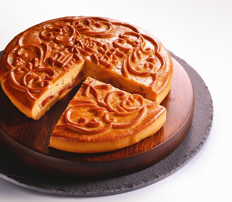 這款改良版的大月餅,講究的可不只是內在。除了節慶文化意涵及口感美味外,在餅面上,則用了傳家木模壓花製作。讓餅面有極具府城文創意象的窗櫺雕花,呈現一派文創風尚。