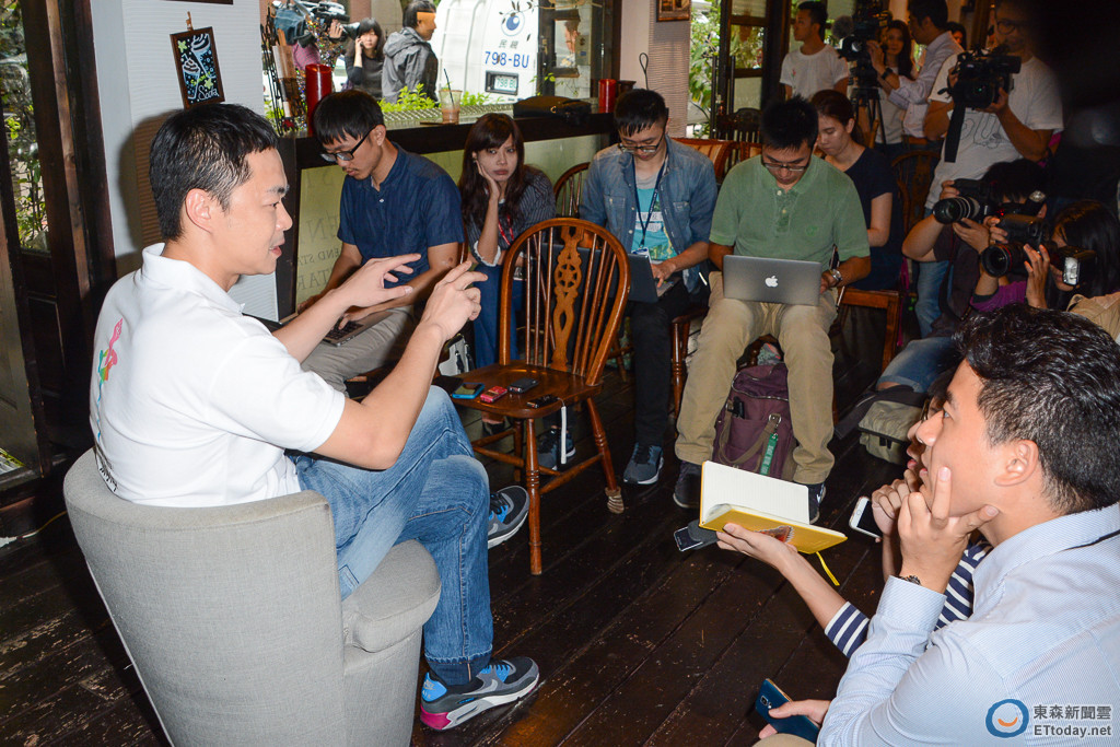 ▲宣布參選立委的Selina老公張承中,14日公開受訪並與媒體喝咖啡。(圖/記者陳明仁攝,下同)