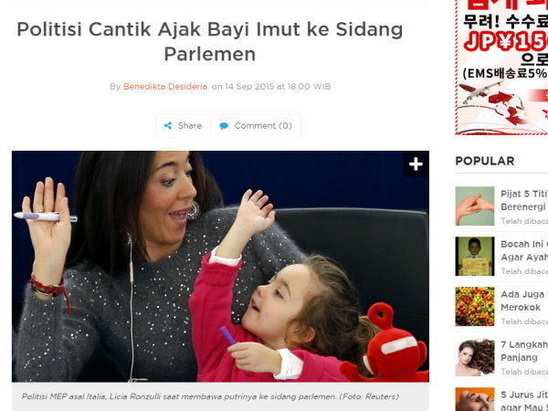 ▲義大利一名女議員,從女兒出生1個多月就帶她到議會上班,現在女兒已經5歲了。(圖/翻攝自《Health Liputan6.com》)