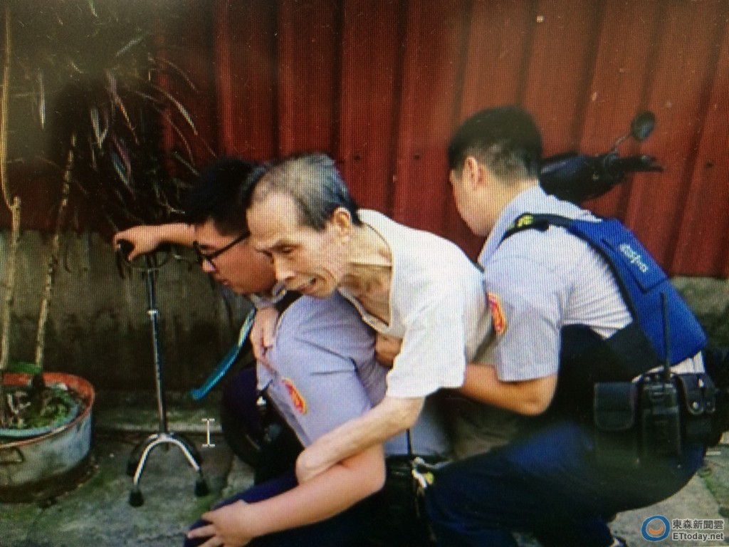 隨後,警員劉嘉翔、張碩寧到場原先試圖揹起老爺爺,但因老先生四肢無力重心無法在劉警身上,只得由員警親自推著輪椅護送老先生返回力行路1段公寓,並再由員警以攙扶的方式一步一腳印帶著老爺爺緩緩走上5樓住處。