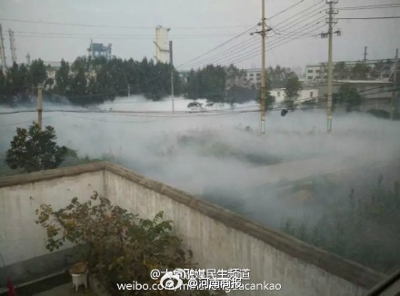 ▲工廠爆炸四處白煙。(圖/翻攝自河南商報微博)