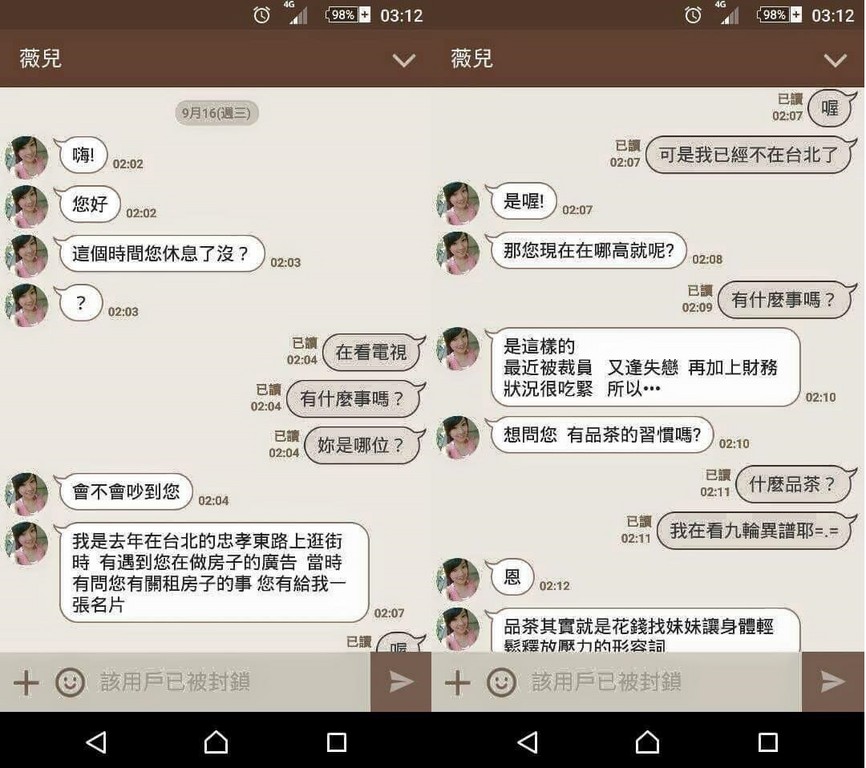 ▼台北棲女詐騙找「品茶」全記錄。(圖/翻攝自加藤軍台灣粉絲團2.0,下皆同)