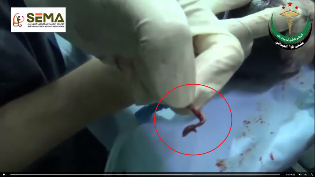 女嬰是由阿勒頗市醫務委員會中,提供無償醫療服務的醫護人員緊急接生,他們專業將女嬰從母親肚中拉出後,先簡單清理她的身體,再疏通氣管,直到她爆發響亮的哭聲;接著,這群醫護人員成功的將插在女嬰頭上的彈片取出,之後再替她完全洗淨,並裹上綠色的布。