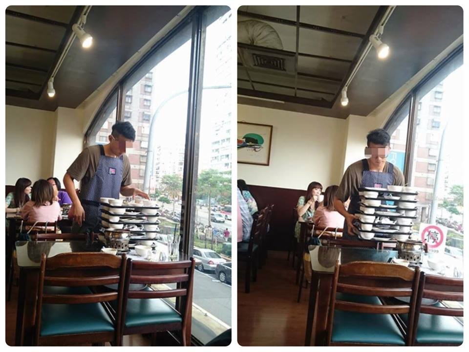 ▲服務生一次可以端一堆盤子,讓民眾深感佩服。(圖/翻攝自爆料公社)