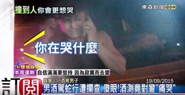 ▲酒駕男一想到之後可能要繳交大筆罰金,忍不住崩潰大哭。(圖/東森新聞,下同)