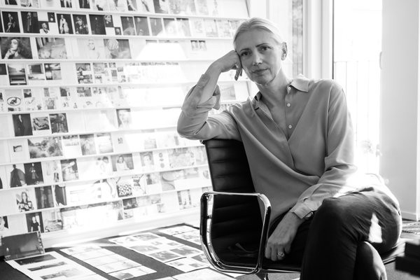 在德國時尚媒體,尤其時裝周前後的報導,很難不注意到一頭銀髮身影的她。一貫中分、低包頭髮型、乾淨裸妝,黑白或是大地、駝色系襯衫,搭配上利落褲裝;中庸裝束也掩蓋不了她的強大氣勢。