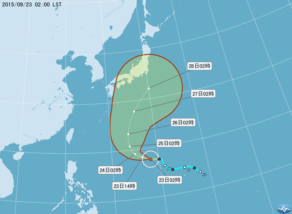 輕度颱風「杜鵑」23日凌晨2時在關島附近形成,目前以每小時16公里速度往西北西方向前進,預估會北撲日本,對台灣較無影響,但如果北轉的時間較晚,有可能給台灣東部帶來降雨,也可能給東部及北部帶來多雲的天氣。