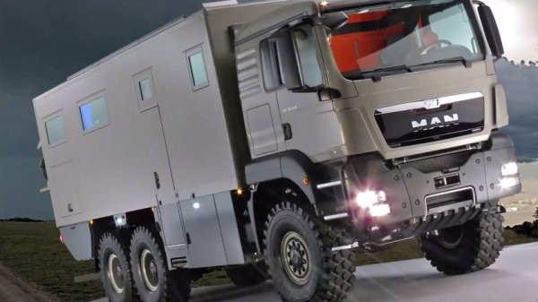看到露營車很羨慕嗎?來看看這款奧地利生產的「露營坦克」吧!擁有720匹大馬力,內部有23平方呎的生活空間,尾部還有一個升降式的電梯,可搭載一輛機車。這輛型號為XRS 7200,外觀充滿軍事粗曠風格的露營車,內裝有洗衣機,烘乾機與衛星電視,當然售價也很驚人,定價是585,000歐元,相當於台幣2106萬元。