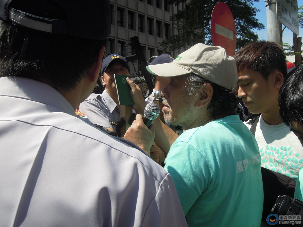 ▲蔡丁貴遭拒收拿貼著「台灣國」的喊「自首」,嗆聲「我是首謀」。(圖/記者賴于榛攝,下同)