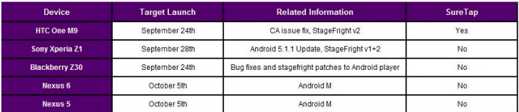 蘋果公司 iOS 9.0 已經於 9 月 16 日發送更新,並於近日又更新 iOS 9.0.1,然而 Google 公司僅預告將於 9 月 29 日舉辦媒體活動,並未說明有關 Android 6.0 Marshmallow 發送時程。如今這時間,可能可以從加拿大電信商 Telus 搶先預告的更新計畫探出端倪,時間點將會落在十月初,相當讓人期待。