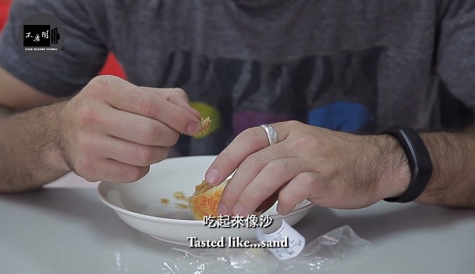 影片中,美國人先吃了一口玫瑰月餅,馬上面露難色地說,「什麼鬼」,這個吃起來一點都沒有玫瑰味,超級乾,根本沒有玫瑰,「比較像花生醬吧,吃起來像沙!」接下來,馬上換香港人試吃椒鹽月餅,她吃一口就摀嘴說,「很乾,沒有椒鹽的味道,月餅應該是甜的,這個是鹹的,可是沒有鹽的味道。」