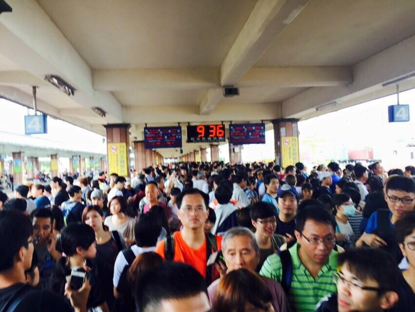 中秋連假最後一天,各地開始出現返工潮,但碰上杜鵑攪局,台鐵宣布下午部分地區火車站將停駛,讓上午出現大批旅客擠爆火車站現象。尤其以花蓮站最為嚴重,網友將照片分享到臉書爆料公社,火車站入口、月台被滿滿旅客擠得水洩不通,讓人看了直呼誇張。