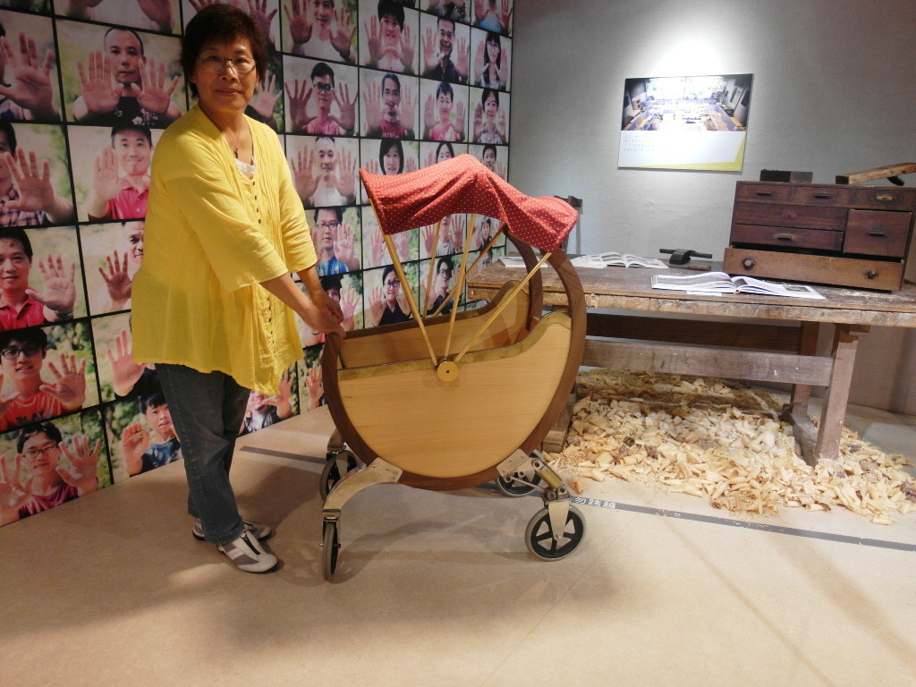 全台獨一無二的原木娃娃車,是現年63歲的呂彩雲阿嬤,親手為愛孫設計製作的。6年前她因為找不到喜歡的木質吊燈,於是報名參加「懷德居木工實驗學校」學習木工,從為自己創作到為家人而作,一路創作了無數的木藝作品,她的創意及行動力連班上年輕的學員們都自嘆不如!