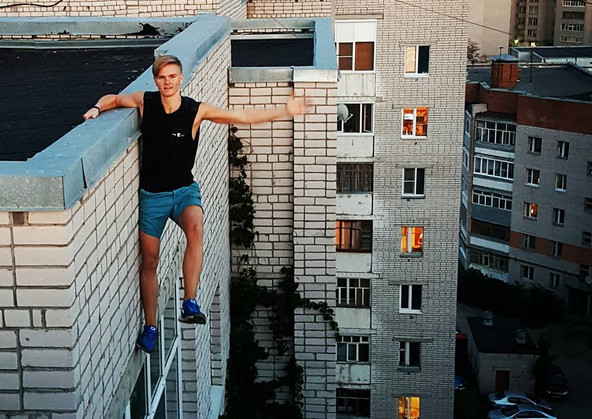 俄羅斯一名17歲少年上周在沃洛格達(Vologda)一處大廈頂樓自拍,他用繩索將自己懸吊在大樓外,結果繩子突然斷掉,就這樣硬生生從9樓墜下,平時愛玩「極限自拍」的他,不幸把自己的命也給玩掉了。