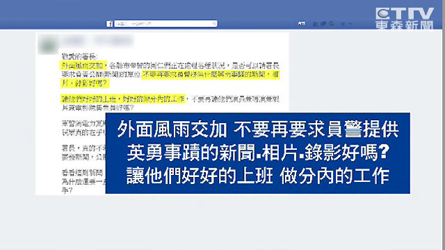 雖然適時表揚同仁、給予鼓勵是好事,但有時勤務已經忙不完,還要拍照錄影存證、爭取曝光,讓基層員警真的很無奈。(新聞來源:東森新聞)