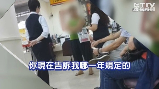 婦人堅持要開戶,並跳針式質問銀行行員。「什麼時候開始規定的?哪一年開始規定的?你現在告訴我哪一年規定的?你現在跟我講,我現在不想坐,(行員:你先坐一下)不用,哪一年規定的?哪一年規定的?哪一年規定的?」