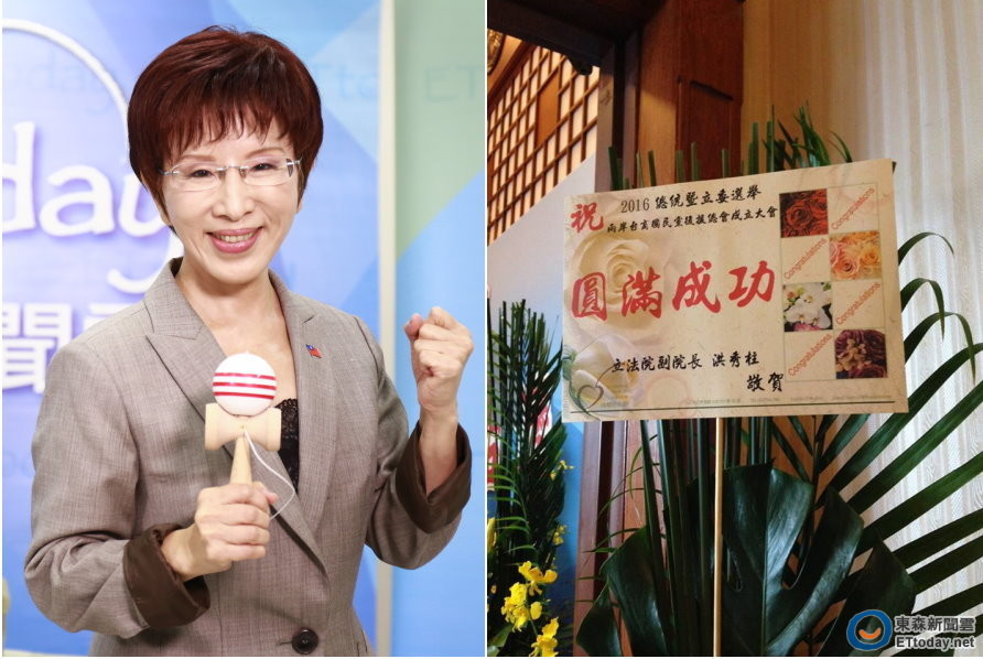 周玉蔻今天就在臉書PO出一張照片,內容是洪秀柱祝賀兩岸台商國民黨後援總會成立大會的花藍以與賀卡,文末則屬名「立法院副院長洪秀柱 敬賀」,讓周忍不住直呼,「有點無言的白目感」。