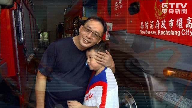 蔡穎科的兒子才剛下課就趕快衝到爸爸工作的地方,因為不知道等會兒爸爸是不是又要出勤,把握短暫的相處時間,一個擁抱勝過千言萬語。