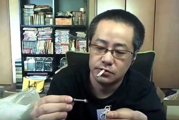 ▲大叔透過網路視訊,展示自己先前買的打火機。(圖/翻攝自YouTube)
