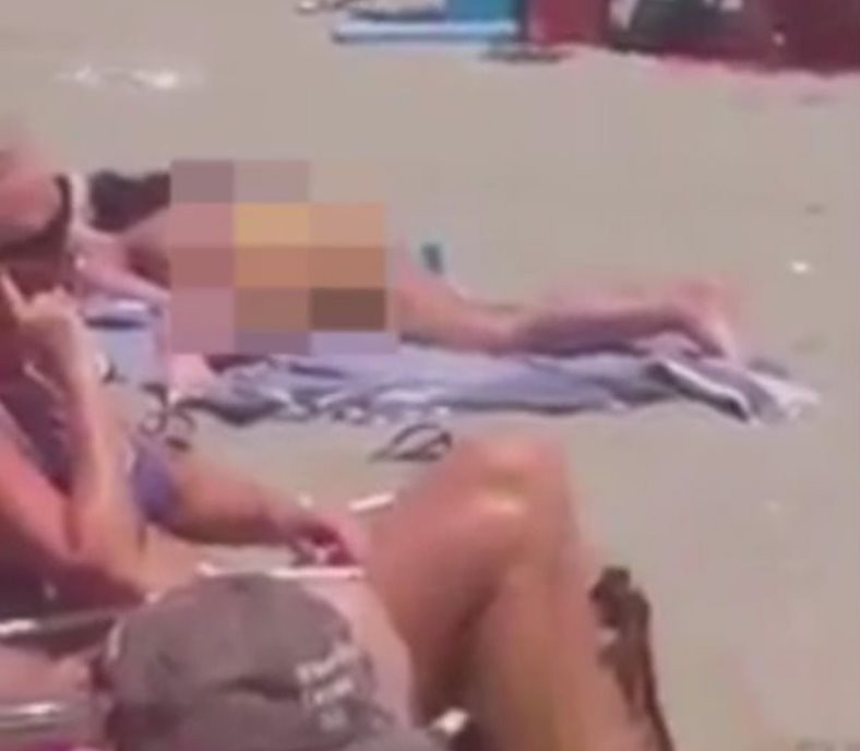 ▲一名上空豪放女趴在海灘上公然自慰,嚇壞所有旁觀者。(圖/翻攝自網路)