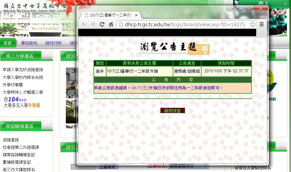 ▼校方6日下午卻以「急件」取消高三學生升旗引發譁然(圖/翻攝自臺中女中網站)