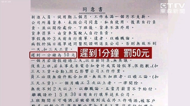 不只員工抱怨連連,一般民眾看到這樣的同意書也傻眼。「那違反勞基法吧?不就頭腦不好才會簽。」網路上更是一片罵聲,說一張同意書10幾條規定,少說有一半以上都不合理也不合法。