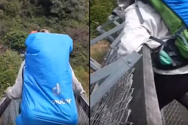 ▲法國背包客到紐西蘭旅行,卻歷經吊橋崩塌的意外。(圖/取自YouTube,下同)