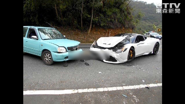 ▲小March與法拉利對撞發生車禍,結果超跑的車頭幾乎全毀,國產車卻只有一邊的車頭往內凹陷。(圖/東森新聞)