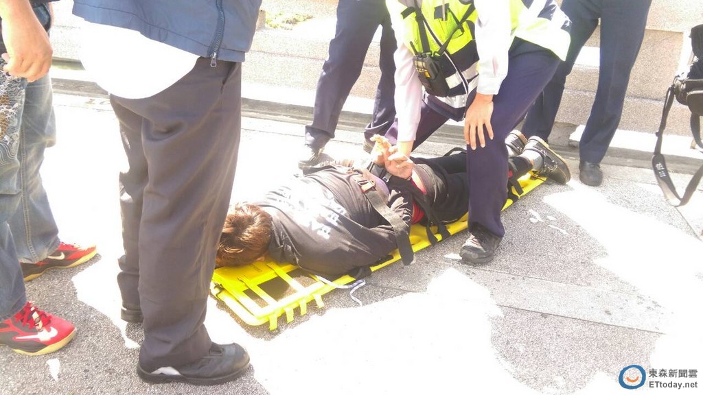 ▲持刀男子最後被制伏在地,送醫治療。(圖/楊佩琪翻攝)