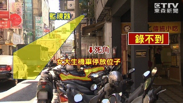 當時女學生停車的位置,剛好停在監視器下方,是錄影死角,事發經過沒留下影像,事隔一天,修車男子拿著女學生抵押的證件上門要錢,說是給對方方便,幸好當時學長在旁邊,質疑對方全新的也只要300多,並問說:「還一個新的給你呢?」對方連聲答應,拿了新零件後悻悻然離去,堅決不肯留下姓名電話或車行名稱。