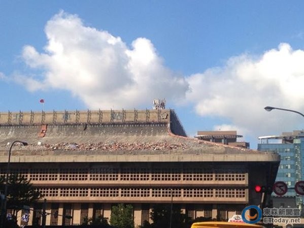 其實,台北車站自屋頂翻修以來就話題不斷,常常會有民眾拍照反應對於屋頂上各式各樣的擔心,先前也曾有因為屋頂上的沙包擺放太過整齊,有人表示這樣會引發密集恐懼症患者的不舒服感。