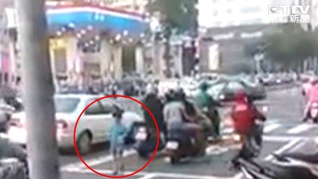 ▲男童身高不到120公分,幾乎與機車龍頭一樣高,站在車陣中非常不顯眼。(圖/東森新聞)