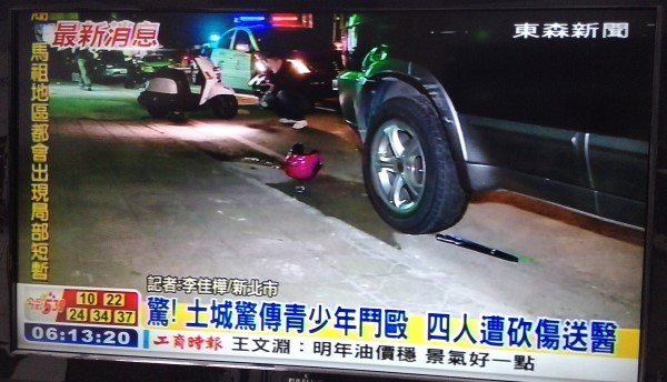 警方19日深夜11時許接獲報案,得知土城中華路2段與員福街口有青少年在械鬥,趕到現場時砍人的一方早已逃逸無蹤,受傷的4人當中有1人自行就醫,其餘3名許姓、高姓及林姓少年手肘、背部及臀部遭砍傷,所幸送醫治療後已無大礙。