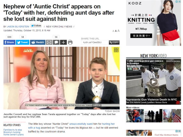 ▲美國一名阿姨竟對自己的外甥提告求償400萬,引發網友抨擊。(圖/翻攝自紐約每日新聞)