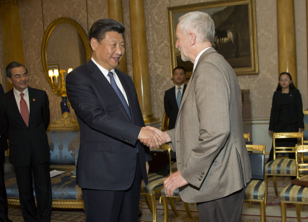 ▲英國工黨主席柯賓與習近平在白金漢宮會面。(圖/達志影像/美聯社)