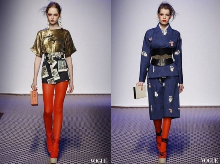 此外,日本攝影師荒木經惟Noboyushi Araki也是本季創作重要的靈感來源。Olympia Le-Tan的藝術家老爸Pierre Le-Tan將荒木經惟Noboyushi Araki的拍立得印在服裝上,當中也有他的代表作「束縛繩」系列。