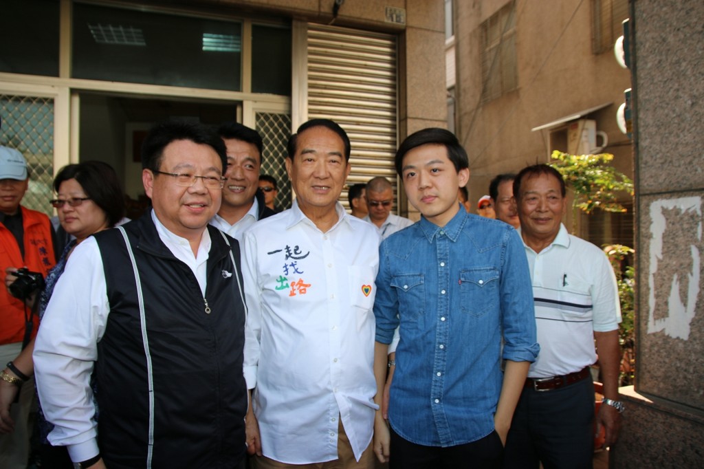 親民黨總統參選人宋楚瑜24日下午到台中市清水區拜訪前清水鎮鎮長楊紫宗。楊紫宗表示,過去都被政黨左右,這一次選舉要選最有能力的宋楚瑜,自己兩個兒子在網路上Google之後,也覺得他很不錯,都表態會投給宋主席。