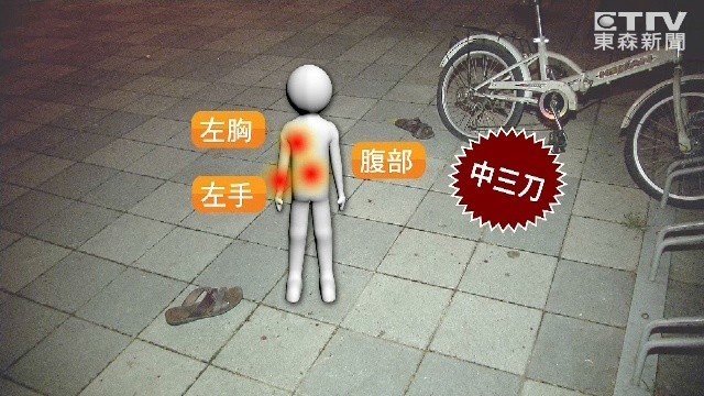 第一時間,警方語帶保留不願多作說明,現場找到2把染血西瓜刀、1把未開封新的西瓜刀及1把只剩刀柄的水果刀,而且地上留有大灘血跡,令人怵目驚心,被害人的拖鞋也遺留在原地,大批員警將現場拉出封鎖線正在採集跡證。