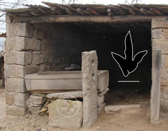 ▲陝西鳥類神靈傳說「金雞」腳印,證實是恐龍足跡化石,當地隨處可見,村民還將它們當作石料建材。(圖/翻攝自《新浪新聞》)