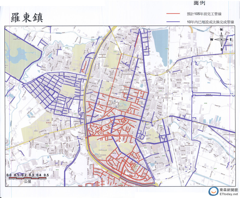 ▲ 宜蘭縣政府公布鉛管分布圖,上圖為羅東鎮。(圖/宜蘭縣政府提供)