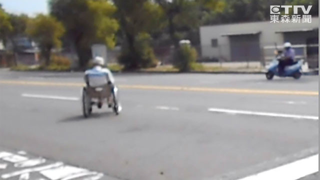 高雄楠梓一位年近80歲的阿伯,自己滑輪椅要到對面的小廟燒香保平安,但滑到大馬路中央時竟然睡著了,場面險象環生,巡邏員警經過連忙把他推到路邊,結束一場虛驚。