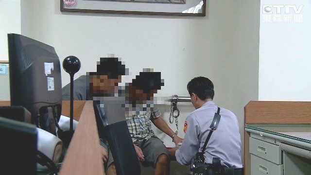▲黃嫌持剪刀搶劫鐘錶行遭逮,在警局看到兒子慚愧落淚。