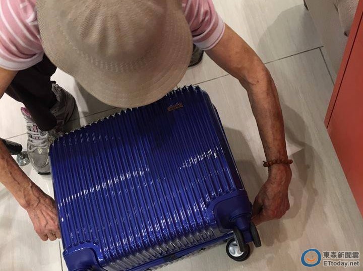 一名網友表示,一位彩妝櫃的小姐見婆婆的行李袋把手斷掉,就把當贈品的KOSE藍色小旅行箱送給婆婆,「婆婆還很開心行李箱可以防雨」。